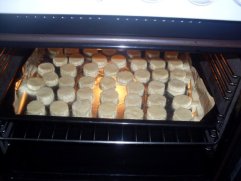 Pasado ese tiempo, precalenté el horno y saqué la masa. Con ayuda de un poquito de harina y el rodillo, extendí la masa y la corté con el cortapastas. Las tuve en el horno a 170ª durante 30min.