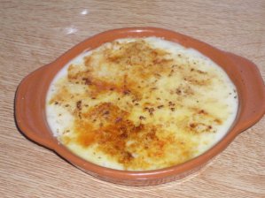 Pasamos el arroz con leche a unos cuencos y a la hora de servir lo espolvoreamos con azucar, que después quemaremos con un quemador o un gancho de cocina.