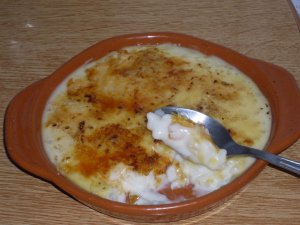Ingredientes; 1 litro de leche entera, 1 medida del vaso de la gm de arroz, 1 piel de limon, 1 rama de canela, 1 y 1/4 m. de azucar, 100gr de mantequilla y un chorrito de anis.