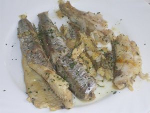 Tenía unas bacaladas en la nevera, pero aquí entre nosotros, es el pescado que menos me gusta, tiene demasiadas espinas y me desespera. De todas fomas por no buscar otra cosa, las cogí y me inventé esté platito, que a pesar de la incomodidad de las bacaladas, estaba rico rico.