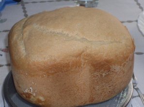 Estoy como loca con la panificadora, es un lujo tener pan hecho en casa. Esta receta en concreto, viene en el recetario de mi panificadora. El agujero que vemos en el corte, es por culpa de la pala de amasado, que se quedó dentro.  De sabor es un pan muy rico, semejante al de diario. Habría que cortarlo una vez frio, pero siempre pongo la pani tarde y luego sale el pan justo a la hora de comer. Así que de momento los estoy cortando todos en caliente, muy muy mal jaja.