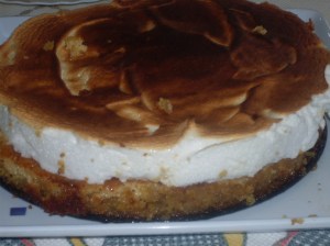 Repartimos el merengue sobre la masa anterior y lo ponemos unos segundos en el grill, para que dore.