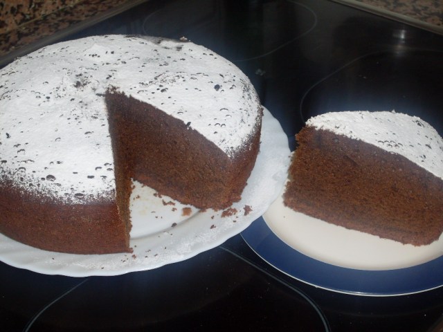 Ingredientes; 4 huevos, 130gr de chocolate, 130ml de aceite de girasol, 30ml de leche, 200gr de harina, 110ml de vino tinto, 200gr de azúcar y 1 sobre de levadura.