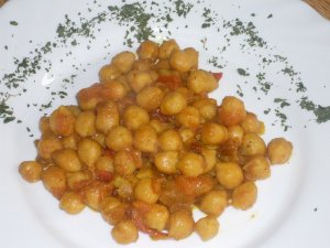 Ingredientes para 4 personas; 400gr de garbanzos de bote, 1/2 cebolla, 10gr de jengibre, 2 dientes de ajo, 200gr de tomate.