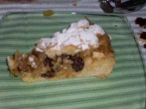 Esta receta es de un libro que se llama «Cocinar es facil» aunque yo la conocí gracias a innumerables blogs que no se cansaban de alabar su exquisito sabor y testura. Por lo visto «engrunada» significa «migada» y se referirá a la cobertura (exquisita, como de galleta) La receta la copié hace ya mucho tiempo y he esperado el momento idoneo para prepararla (vamos el momento que la gente que la hiba a degustar no fuera de esta exquisita, que si no me gustan las pasas, que si no me gustan las nueces…)Bueno, finalmente la preparé ayer para el bollu de las fiestas de Santa Isabel (que penita, se acaba el verano y las romerias)