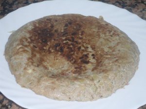 Batimos los huevos y cuajamos como una tortilla normal (este no es mi fuerte, mis tortillas siempre salen un poquito raras)