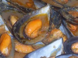 Ingredientes; 1kg de mejillones, aceite, 2 ajos, 1 cucharada de pan rallado, 1 cucharadita de pimentón dulce y 1 guindilla.