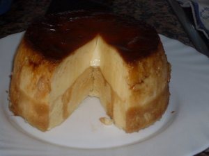 Batimos los ingredientes del flan y lo vertimos en la flanera.