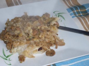 Fideos de arroz con alcachofas y champiñones