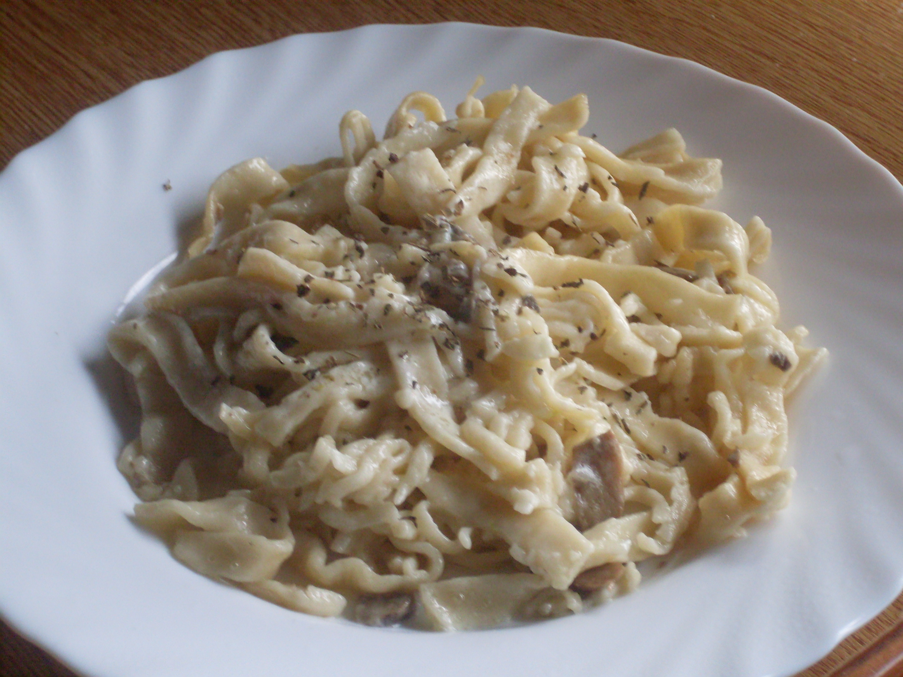 Era la primera vez que hacia tallarines con la maquina de hacer pasta y me salieron un poco gorditos, tardaron un ratito en hacerse, pero aun así estaban muy buenos. Da gusto con la pasta casera, hay un mundo de diferencia con la comprada.