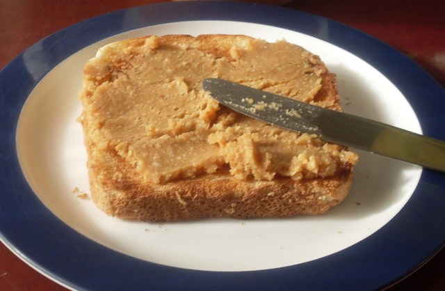 Que desilusión, pues ahí tuve yo el tarro durante cierto tiempo, probando a mezclarlo con todo lo que veía que lo hacían en la tv, hasta que encontré la mezcla ideal «con galletas de chocolate» sencillamente deliciosa ;). Bueno, para gustos colores, con el tiempo supe de gente que se la come con mermelada y cosas así. Yo misma me he acostumbrado a su sabor y también me gusta como lo veis en la foto, sencillamente en una tostada recién hecha.