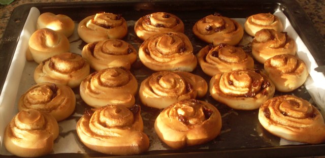 Hace años que tengo pendiente esta receta, pero un día por otro y como se suele decir, la casa sin barrer…. Viene en el libro Tentaciones al horno y cuando los vi, pensé de inmediato en los enrollados de canela del ikea, que me encantan. Pues bien, mas tonta he sido en no prepararlos antes, están mucho mas buenos, vamos que le dan mil vueltas a los del ikea, muy ricos, tiernos y lo justo de dulces, han sido un éxito entre mis catadores de hoy (vamos, mi cuñada y mi vecina;) )
