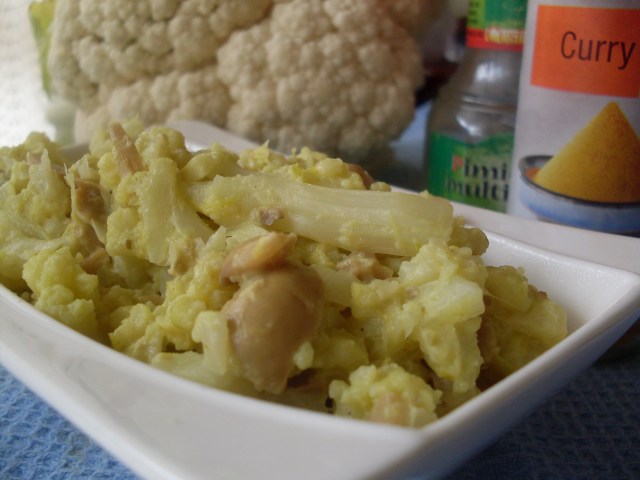 Hace ya bastante tiempo de la primera coliflor al curry que vi por internet. Desde entonces he visto montones de recetas, a cada cual con mejor pinta que la anterior. Así que ha sido casi imposible decidirme, he optado por esta versión sencillita que es una mezcla de muchas y que me ha encantado (sabía que me gustaría, me encanta la coliflor y el curry me vuelve loca 😉 )