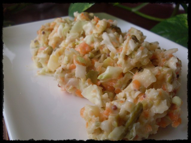No fue hasta que me registré en el foro de cocina donde participo cuando conocí esta ensalada, también llamada ensalada de col o ensalada americana. Y es que aunque dicen que su origen se remonta al imperio romano, es mas bien en EEUU donde han hecho de este plato un acompañamiento habitual.