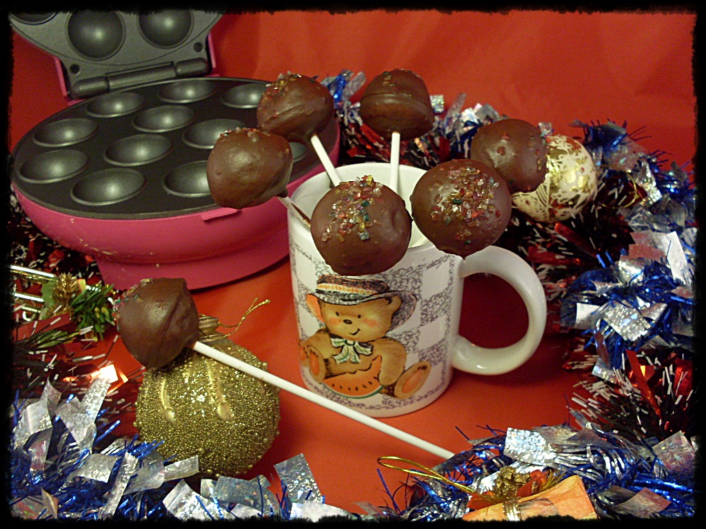 Derretimos el chocolate con un poco de mantequilla, ya sea en el micro, o al baño maría. Metemos el palito en el chocolata y pinchamos una bolita, dejamos secar. Hacemos así con cada bolita.