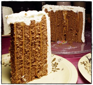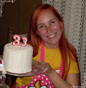 Y esta es mi tarta de cumpleaños, que desde luego está lejos de ser perfecta y mas pensando en los pasteles tan maravillosos que hay en algunos blogs, pero para mi ha sido un gran logro. Y es que soy un poco manazas para los montajes y ya no os digo nada a la hora de cubrir una tarta o usar la manga ;). Así que después de ver que era capaz de hacer una dobos, me lancé con esta maravillosa y riquísima tarta que había visto en el blog Cocinando hacia los picos.