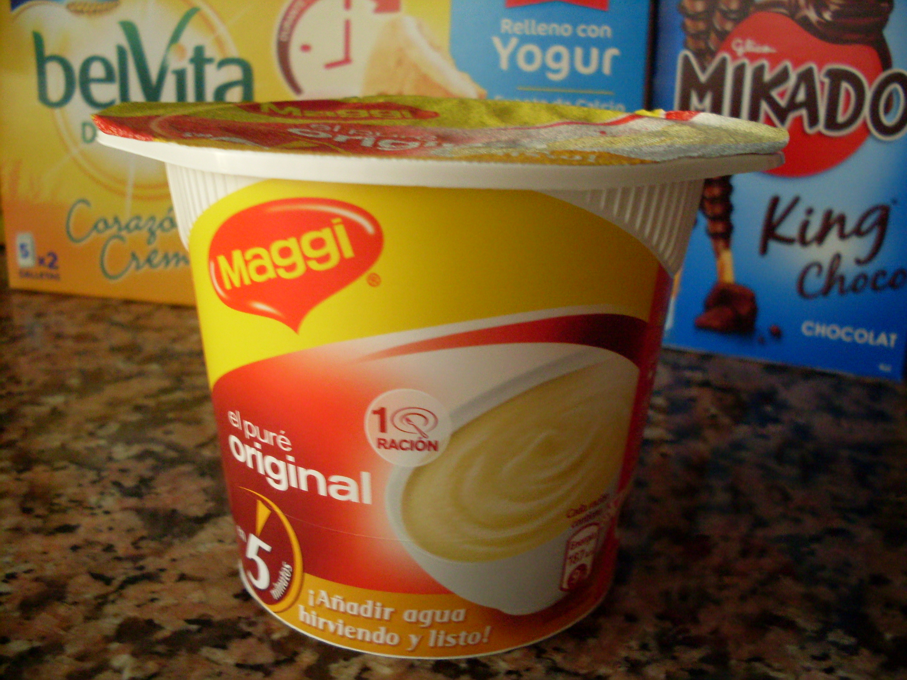 Y de maggi tambien nos mandan un puré individual en el que solo tendrémos que añadir agua hirviendo para poder degustarlo.
