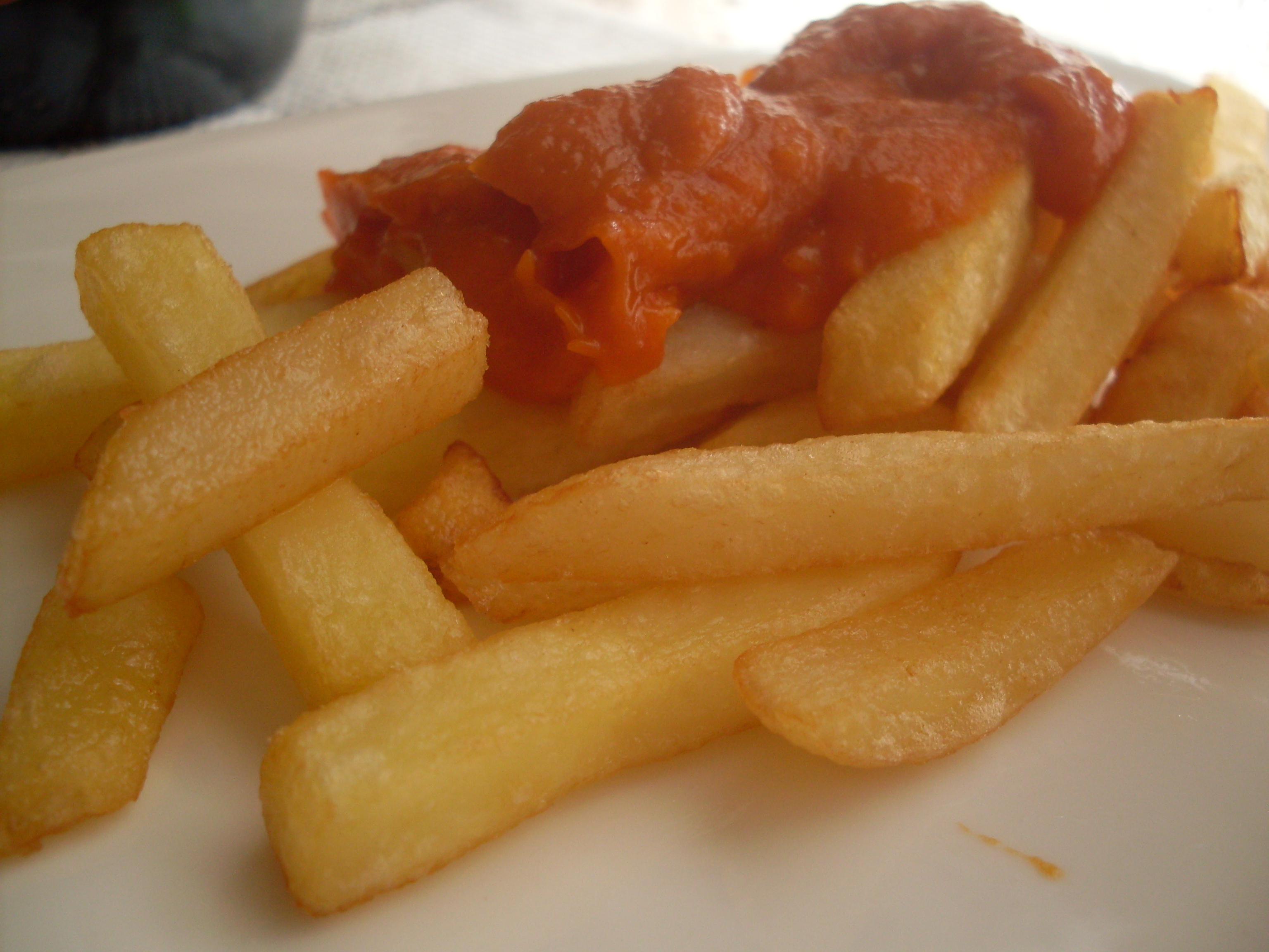 Salsa brava; Concentrado de tomate (en su defecto un bote de tomate triturado natural), 2 dientes de ajo y guindilla al gusto (depende de cuanto piquen y como nos guste, yo le puse 2).