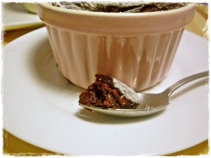 Motivo por el que me ha bajado el souffle? no lo se, pueden ser un montón, entre otros mi horno que no está bien y no tiene una temperatura constante y después de inflarse un montón, en el mismo horno se empezó a bajar ;(. Lo que es seguro es que volveré a intentarlo porque de sabor ha sido toda una experiencia, me ha encantado. Igual de rico recién preparado que al día siguiente…..