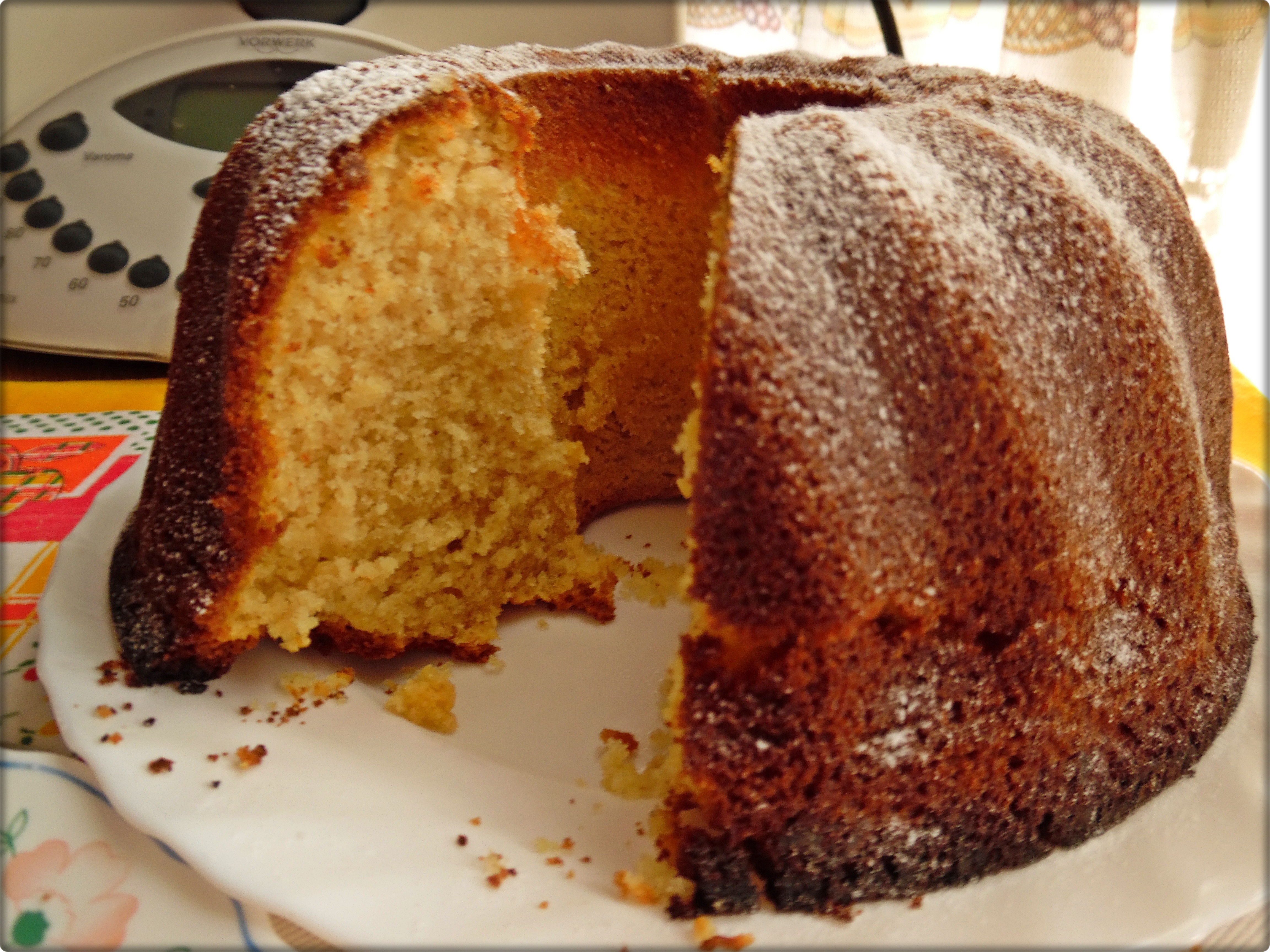 Ayer por fin me compré mi primer molde  bundt cake, uno sencillito que estaba super económico en hipercor ;). Pues nada que me vine corriendo a casa dispuesta a estrenarlo y aunque se me rompió un poquito al sacarlo (las prisas) y que hacía un dia feo feo y las fotos no lucen igual, tengo que deciros que quedó super bonito pero lo mejor de todo, delicioso. Estoy deseando hacerme con mas moldes y probar mas recetas.