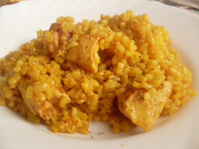 Ahora le ponemos el arroz, sal y pimienta (tener en cuenta que el queso también tiene sal así que es mejor ponerle poquita y ajustar si hiciera falta). Programamos 15 min, 100º, giro a la izquierda, velocidad 1.