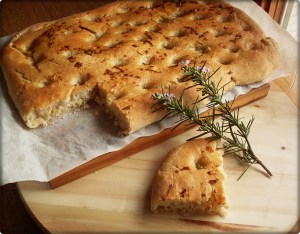 Cortamos las chapatas (sin formar, solamente cortamos las formas del rectangulo que tenemos) y las dejamos reposar otros 20min (o hasta que estén hinchadas y llenas de aire, porque puede que se desgasificaran un poco al manipularlas).