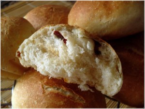 Ponemos en la panificadora todos los ingredientes, siendo los últimos en colocar el harina y la sal. Programamos menú amasado con levado. Cuando termine formamos los panecillos (a mi me salieron 9). Los dejamos levar de nuevo, los pincelamos con aceite y los cocemos en el horno precalentado 200º durante unos 15 o 20 min, dependerá de cada horno.
