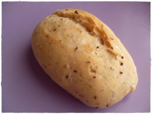 Ingredientes; 200ml de agua, 1 cucharada de aceite, 1 cucharadita de comino en grano, 1 cucharadita (bien colmada) de mostaza a la antigua, 1/2 cucharadita de ajo picado (del de bote), 10gr de levadura fresca, 400gr de harina para pan y 1 cucharadita de sal.
