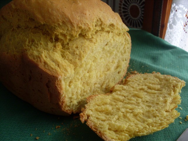 225gr de harina de fuerza, 100gr de harina normal, 1 cucharadita de levadura seca de panadero, 1/4 cucharilla de sal, 1/4 cucharilla de cayena molida, 2 cucharaditas de curry en polvo, 2 cucharaditas de semillas de amapola (no tenía y no le puse), 25 gr de mantequilla, 150 ml de leche y 1 huevo batido.