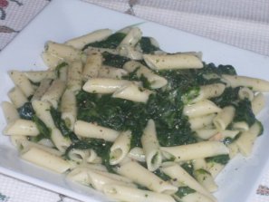 Macarrones con espinacas y salsa de champiñones