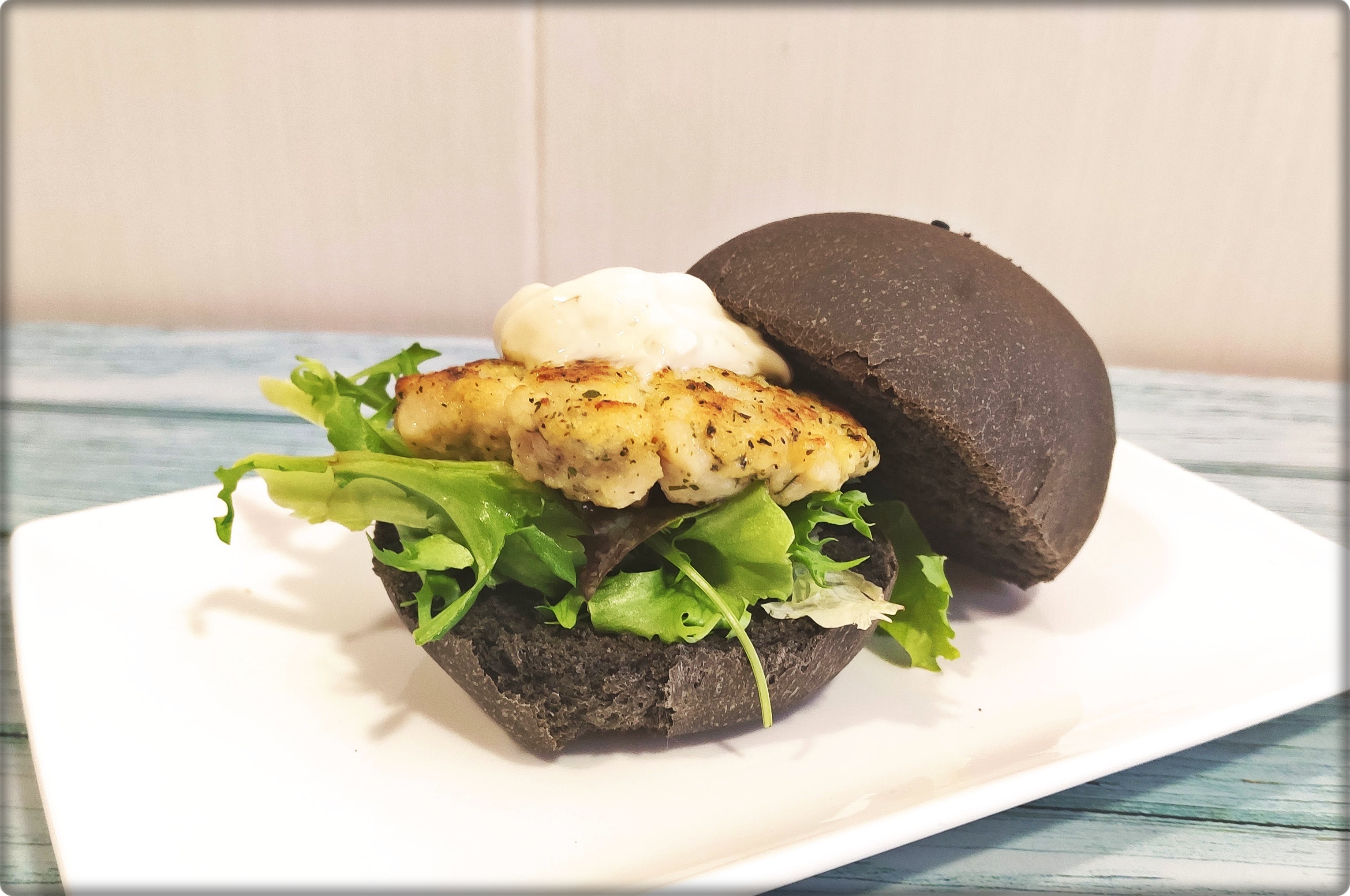 No os imagináis lo contenta que estoy con esta receta, está mal que yo lo diga, pero el resultado me ha parecido espectacular, empezando por el pan que estaba muy tierno por centro, pero con una deliciosa corteza crujiente, siguiendo por la hamburguesa de pescado, súper jugosa y deliciosa y acabando con esa mayonesa de albahaca que no podía estar más deliciosa.