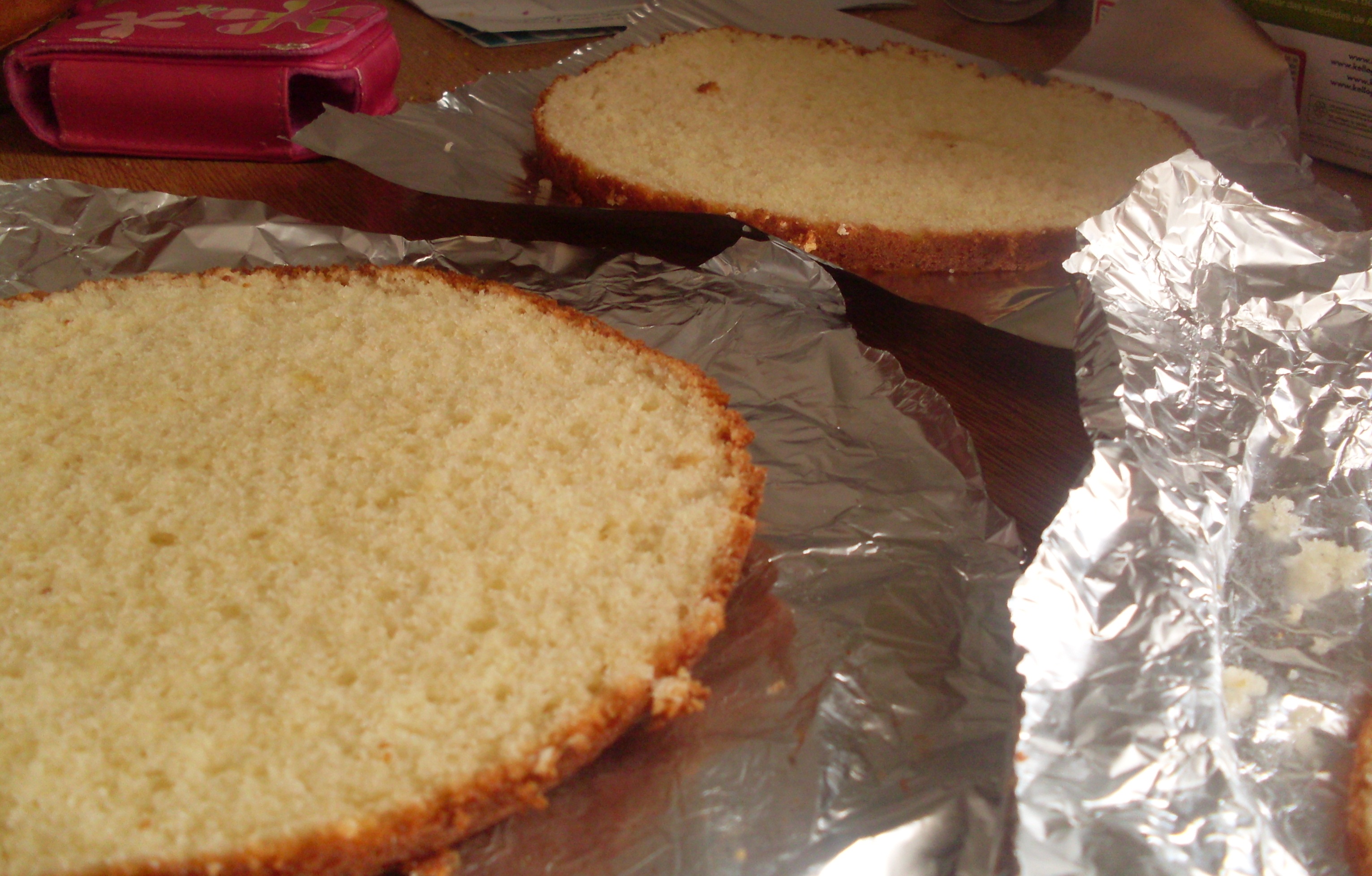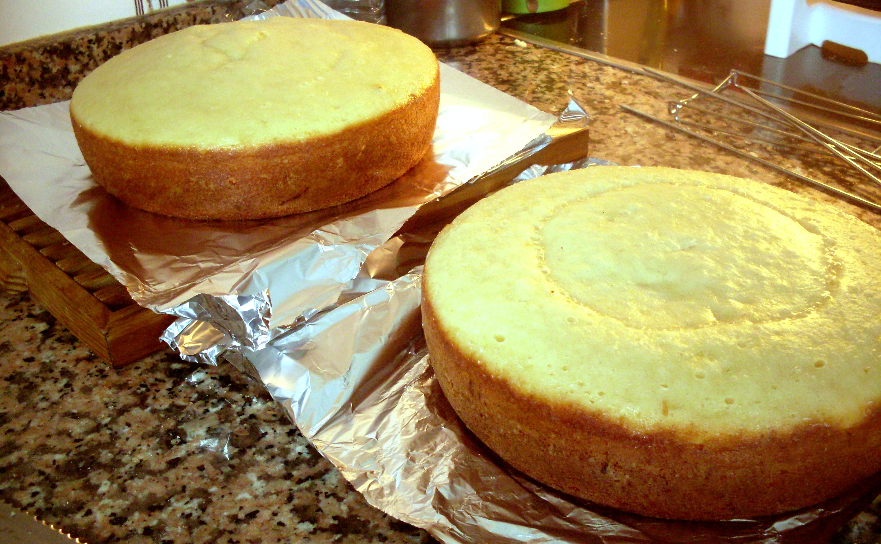 El día antes prepararemos las planchas de bizcocho. Para ello batimos las claras con el azúcar a punto de nieve y luego las mezclamos con mucho cuidado con las yemas. Añadimos la harina y el chocolate tamizado y mezclamos con sumo cuidado para que no baje la mezcla.