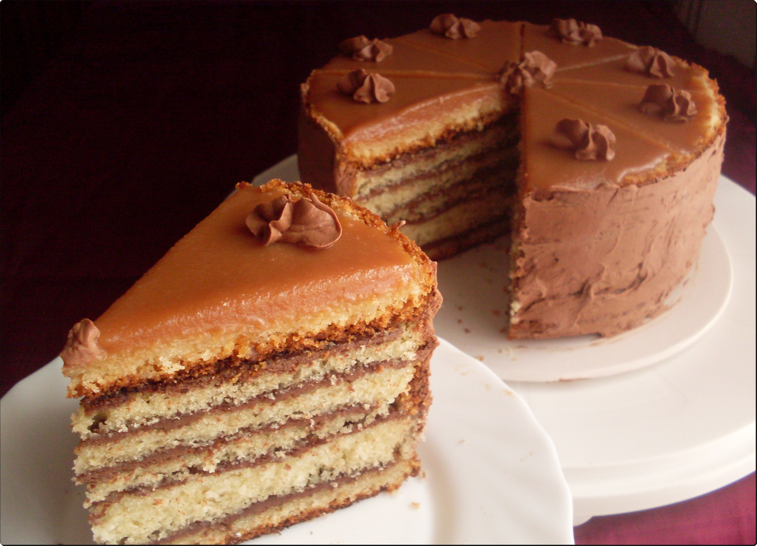 Y esta es mi tarta de cumpleaños, que desde luego está lejos de ser perfecta y mas pensando en los pasteles tan maravillosos que hay en algunos blogs, pero para mi ha sido un gran logro. Y es que soy un poco manazas para los montajes y ya no os digo nada a la hora de cubrir una tarta o usar la manga ;). Así que después de ver que era capaz de hacer una dobos, me lancé con esta maravillosa y riquísima tarta que había visto en el blog Cocinando hacia los picos.
