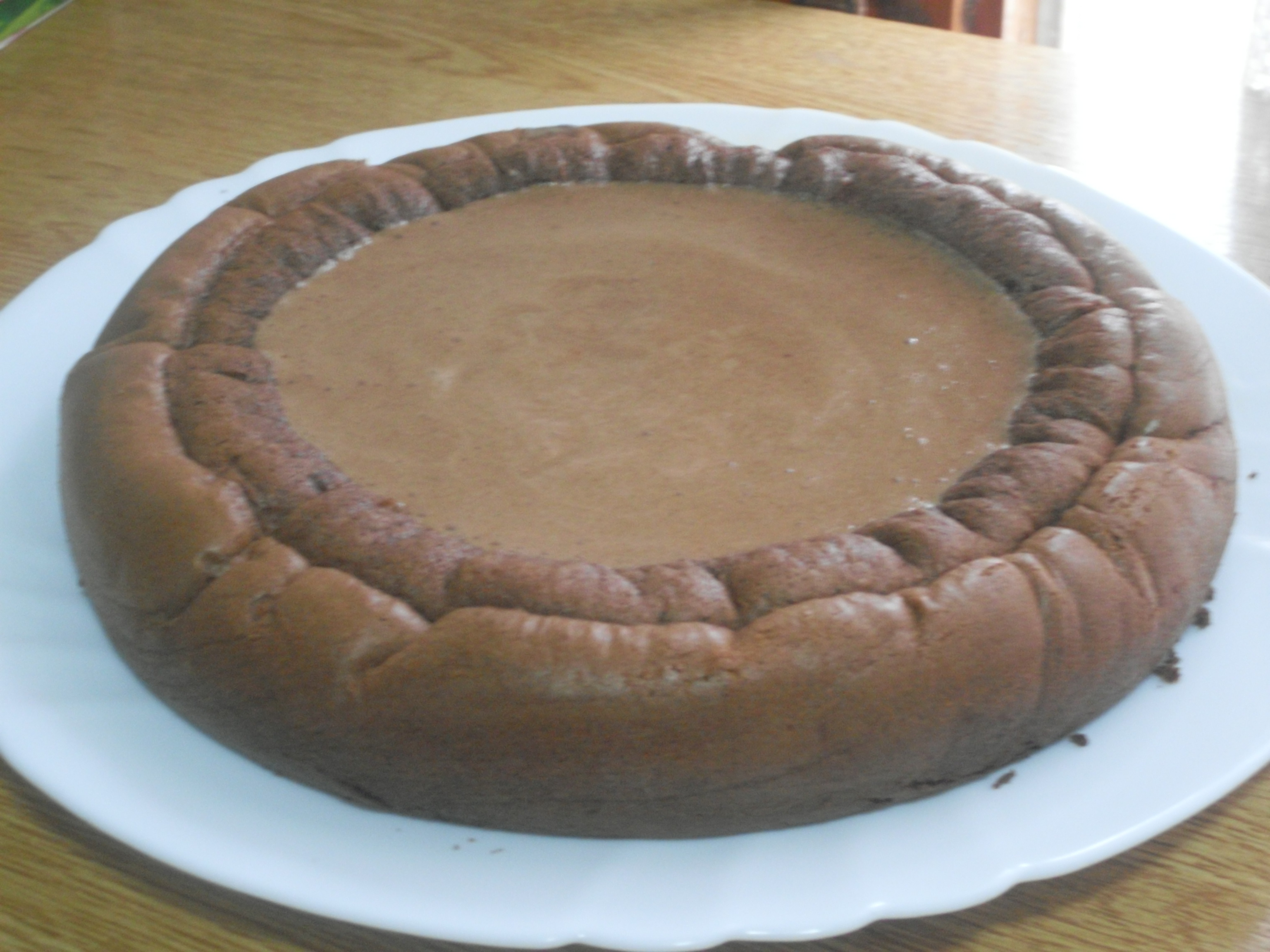 Rellenamos el bizcocho con la crema de yemas ya fria y tambien ponemos otra capa fina por encima.