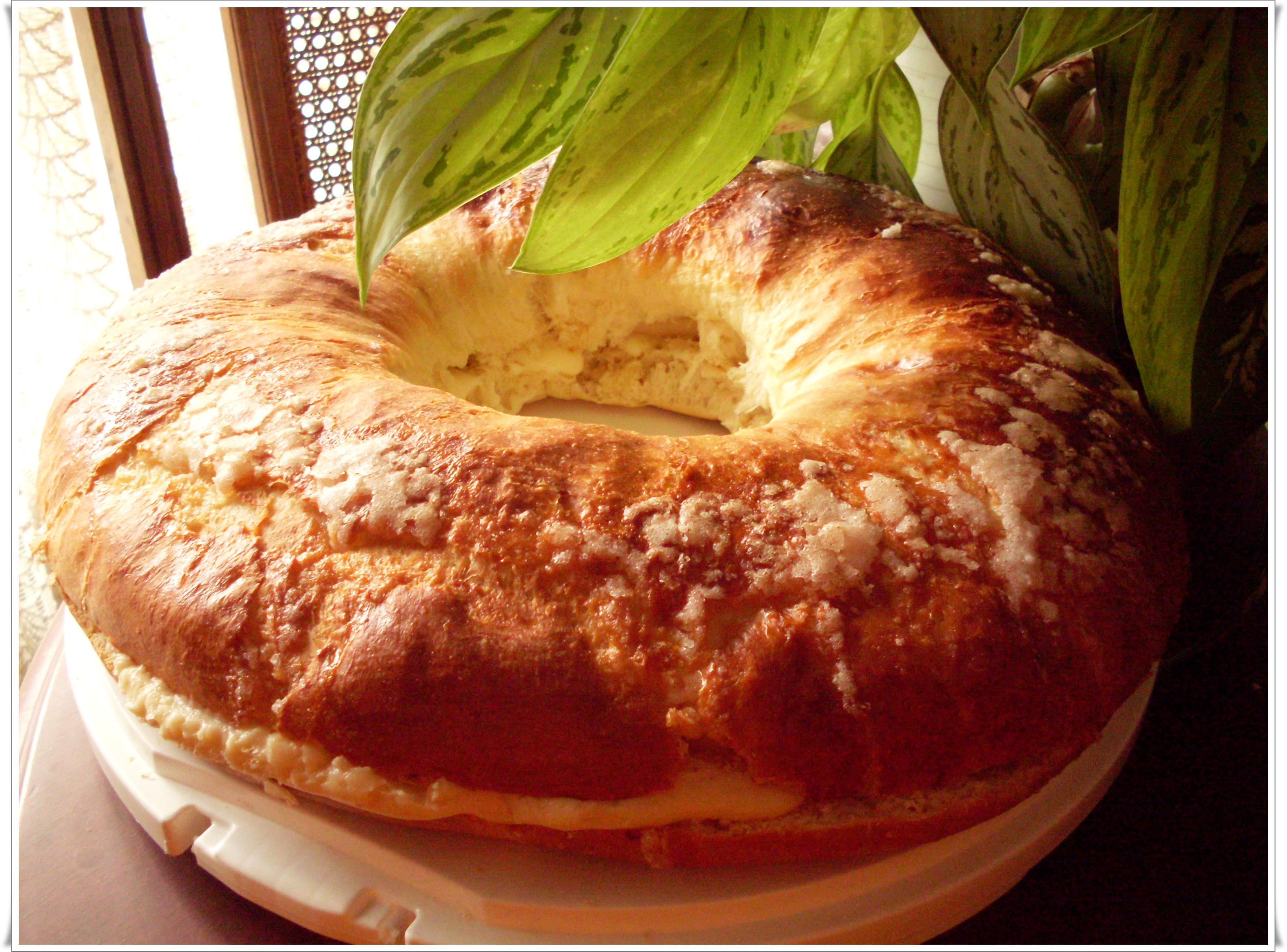 Que contenta, contenta que estoy, no os podeis ni imaginar ;). Y es que a lo largo de los años he preparado muchos roscones y el que no se iba a la basura directo, estaba pasable, pero «muy muy» mejorable. Así que si, el roscón de reyes era mi asignatura pendiente y me daba mucha rábia porque las masas me encantan y les he cogido el punto, pero esta, se me resistia. Pues es curioso que os diga todo esto porque esta receta no me ha dado ninguna complicación, ni eternos tiempos de reposo, una masa muy fácil de trabajar…. vamos, una maravilla. Y el resultado…. no se si se aprecia en el corte, pero…. una delicia, tierno hasta el estremo, delicioso. Vamos, que ya cambio la receta del roscón. El día 6 de enero será este el que prepare (ya convenientemente adornado, que esta vez como tampoco me fiaba ni me molesté en hacerlo).
