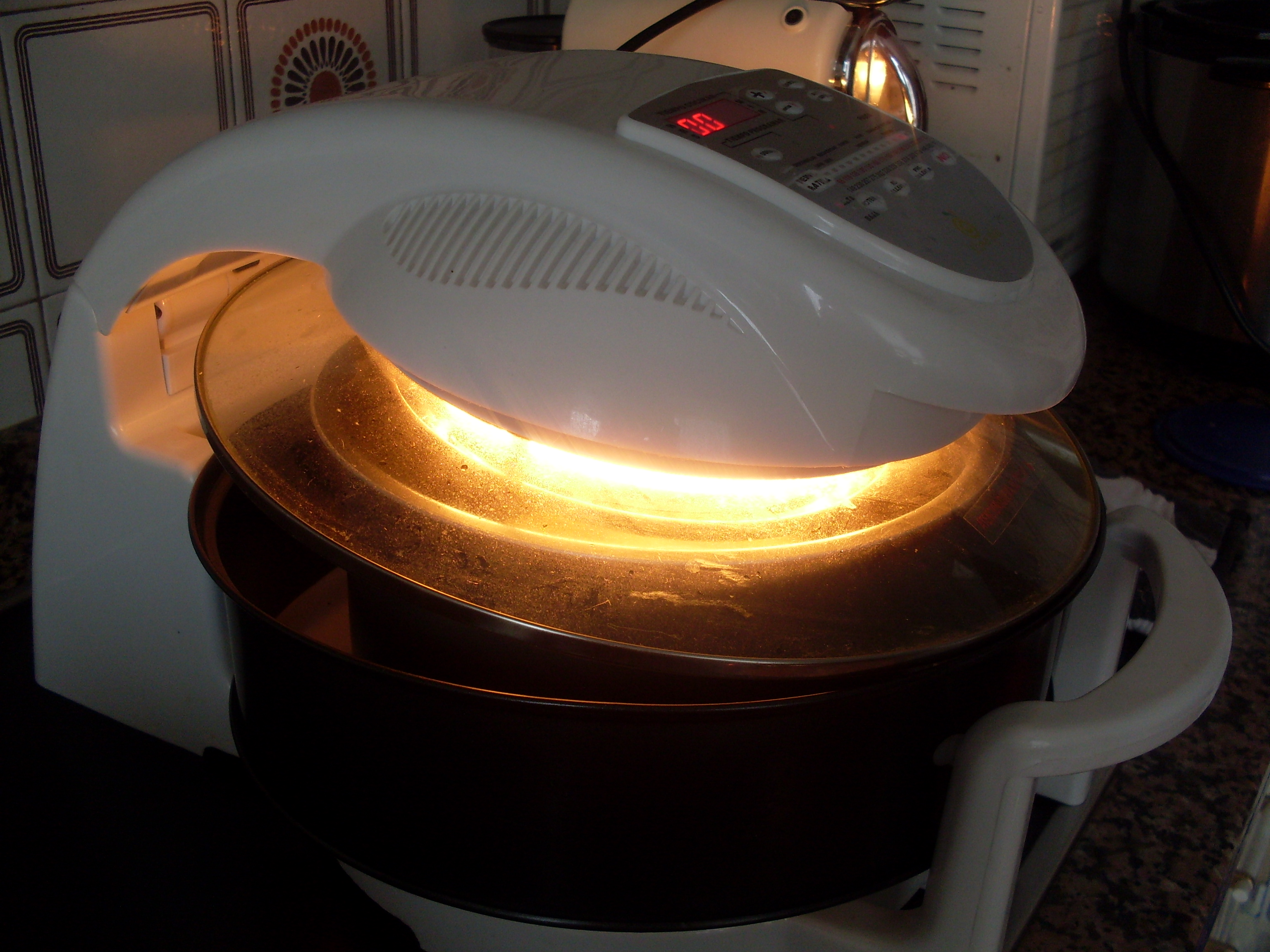 Añadmos el arroz y sofreimos otros 3 min, 100º, giro izq, vel 1. Luego incorporamos el vino y lo programamos 1 min a igual velocidad y temperatura para que evapore el alcohol.